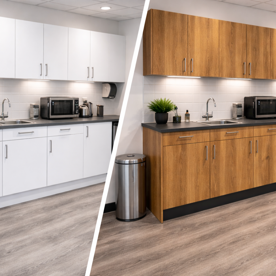 For many businesses and homeowners, a tired-looking space doesn’t mean things are broken, just outdated. But traditional refurbishments come at a high price. New kitchens, office furniture or reception counters quickly add up. Add to that the downtime, dust and disruption of removing and installing joinery, and the project can snowball from simple refresh to full renovation chaos.