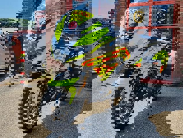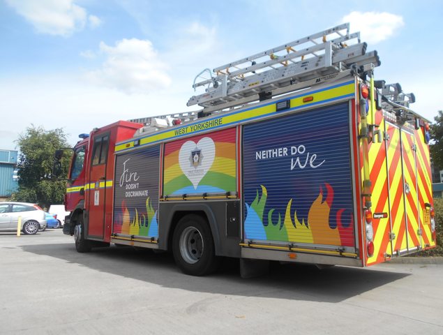 - Rear chevron graphics in red and yellow retro-reflective vinyl