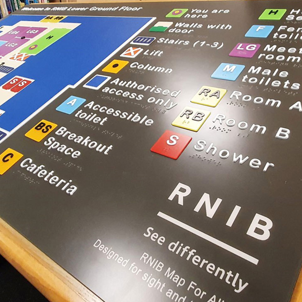 This can be achieved through special attributes, such as tactile signage that uses braille and other touch-based features to support those who are visually impaired. It can also be achieved through the visual design; making graphics clear and bold, being mindful of colour choice and considering that the meaning of symbols and icons can change depending on who is looking at them.
