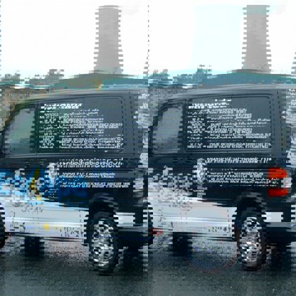 Placement mattered too. The logos were arranged carefully along the sides and rear of the vehicle to make sure no one got missed — a tidy, balanced layout that still looked dynamic when the van was on the move.