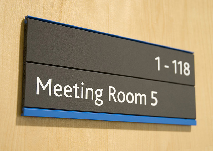 Some cost-effective choices for small businesses include reception signage, door signs and plaques to signpost the most important areas, with illumination being a popular choice for adding extra impact.