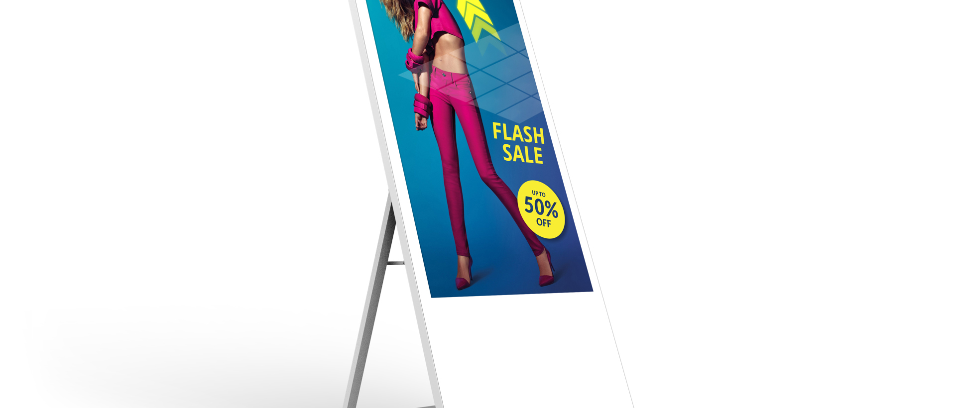 Our digital A-boards offer a fully portable solution for any environment when ultimate location flexibility is required. Bring your brand to life through digital content through striking digital A-boards.