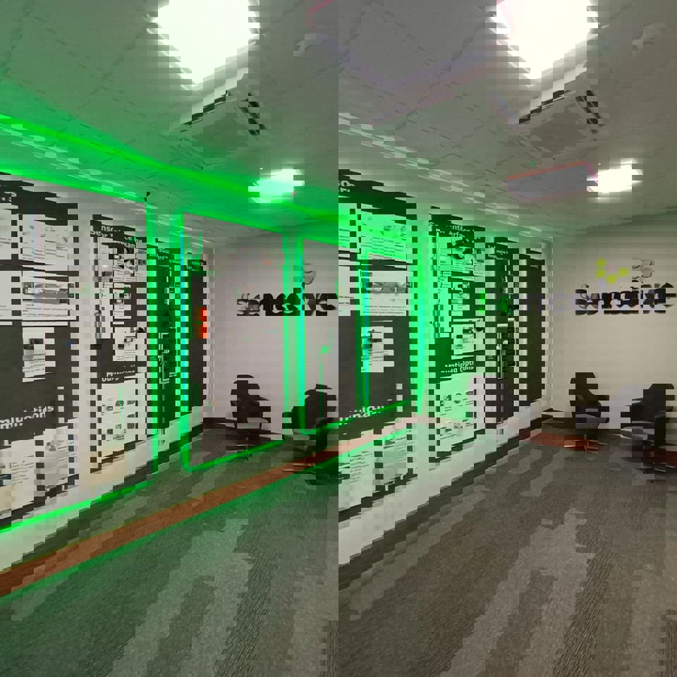 Senceive wanted their new Milton Keynes office to reflect their brand identity, offer a unique look in each room, improve visitor experience, and meet accessibility requirements.