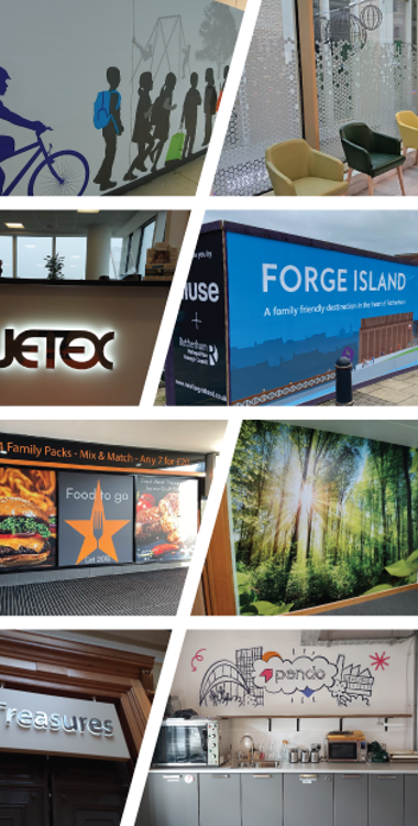 Many of the signs we fit are museums, galleries, schools and college signs, exhibitions, promotional displays, window graphics, office signs, vehicles, banners, event & exhibition signage, directional signs and national signage, commercial premises, industrial units, H&S signage and Covid-19 solutions.